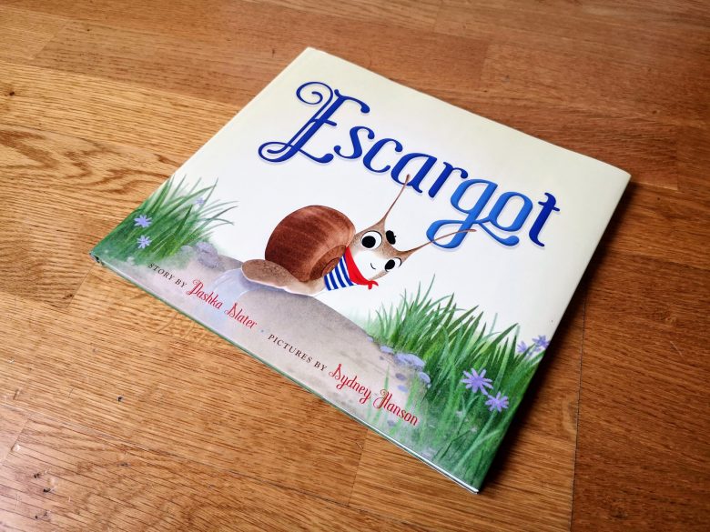 At home, after we told daddy all about our walk, little gosling looked with interest at “Escargot”: a silly, endearing and entertaining monologue of a charming, playful and somewhat vain French snail (dressing the iconical Breton shirt) who tries to convince the reader to choose it as favorite animal and race it to the delicious salad with croutons and light vinaigrette at the end of the book (story by Dashka Slater, illustrations by Sydney Hanson). Lovely, simple illustrations showing a truly beautiful (who suddenly, is not so slimy anymore) snail, that can make one fall in love with this tiny animal. It’s so fun to act it out and the French words here and there make the enterprise more amusing. Little gosling loved the image of the snail hiding in its shell and thought it was playing peek-a-boo :))).