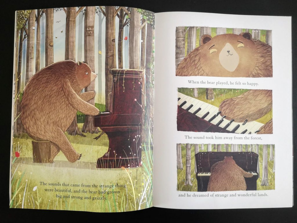 This was part of a batch of books I had bought to introduce little gosling to the world of (classical) music, to familiarise him with musical instruments. The piano seemed like a great start. He loves bears and, since he was a few months old, we have listened to relaxing piano music at sleep time. After reading the book, he was curious to listen to some piano pieces, when I made the suggestion. He now asks for the piano music himself sometimes.