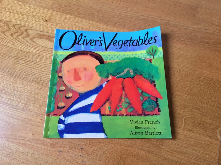 “Oliver’s Vegetables” by Vivian French, illustrated by Alison Bartlett is one of our current go to stories. I find it educational, witty and very enjoyable. I got the book together with a bunch of others on the subject of food. Little gosling loves spending time in the kitchen, “cooking” and going with us to the bio market and thought books would be a great means to add to our hands-on discovery of produce in our kitchen.