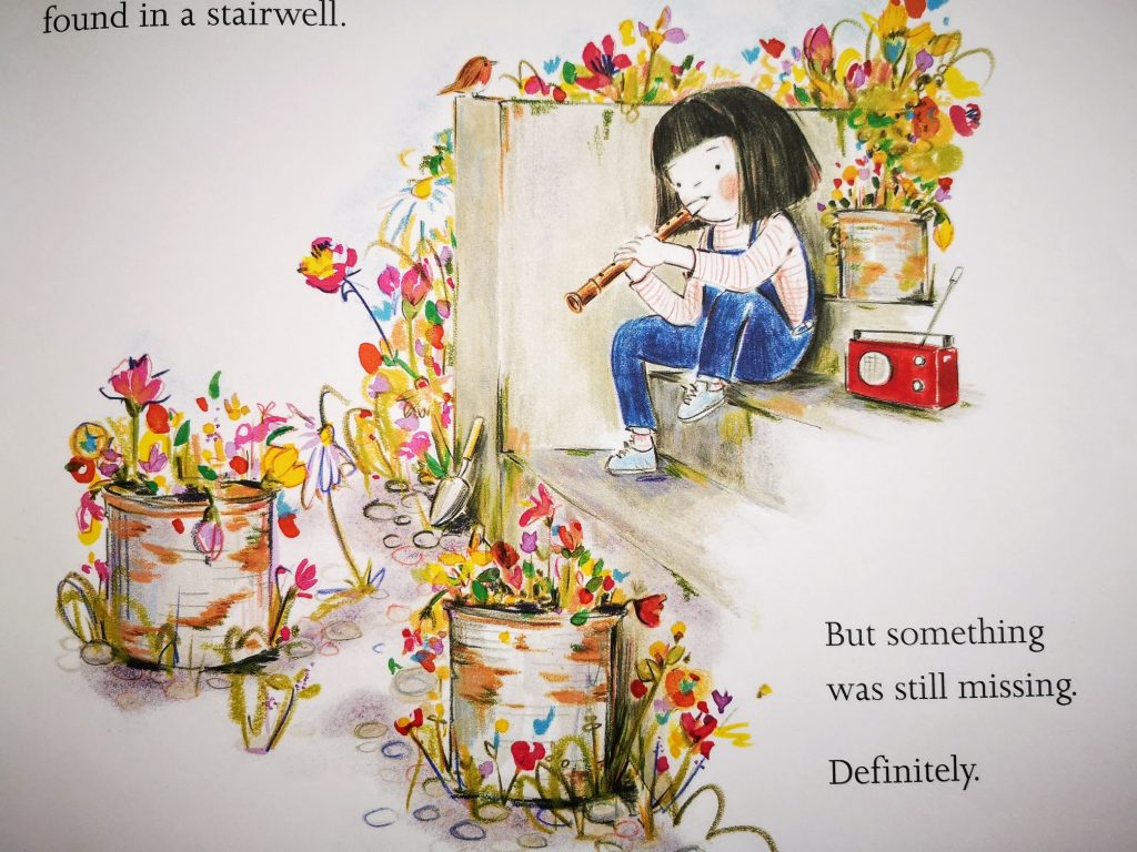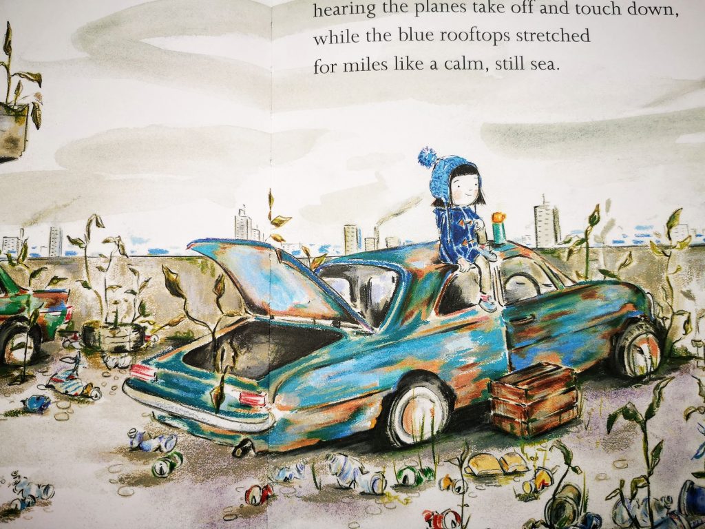 Funni is a lonely girl who spends a lot of her spare time in an abandoned rooftop car park next to the airport. Feeling something is missing, she works hard to clean the place, plant and care for a garden, transforming the place into a beautiful and cozy playground for herself. The rooftop garden finds her the perfect friend. Zoo notices the garden from a plane and has to go there. He is also lonely and shares Funni’s passion for music and kite flying. A heartwarming story about friendship, with a lovely message about kids’ autonomy, creativity and enormous work capacity and a touching environmental note.