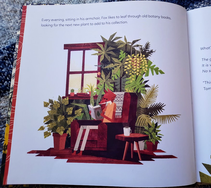 I love the little details: fox’s inviting reading corner, in an armchair, by the window, surrounded by plants all around; the mountain goat reading a book while balancing on a rock; the colors of the sunrise and sunset.