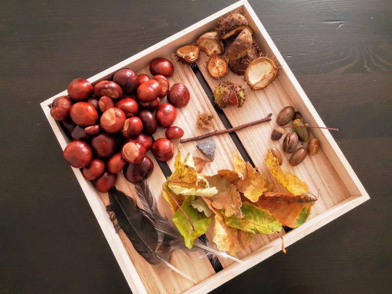 I’m an autumn-born child and I adore autumn colours: dark green, yellow, orange, red, brown… This year, with little gosling we chased them through the parks every weekend.. almost! On foot or with the balance bike, close to home or at the end of a very exciting journey (for little gosling :P) with the metro and tram, we wandered among the trees and in the grass and took home a basket full of yellowing leaves (oak, hornbeam, sycamore), chestnuts, acorns, sticks and feathers. We also took the time to notice other little details…