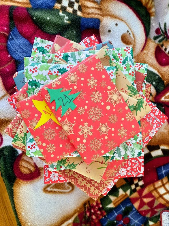 Many mommies rely on library books for the Book Advent, which is a terrific and economic idea. Due to language preferences and COVID restrictions, I had no possibility to have recourse to the library at the time, so I bought all of the 24 books myself. Another economic idea is books swaps with other mummies. I did not have that possibility either. I followed the advice of the instamummy I had first seen the idea at and started acquiring the books a few months in advance (already in August) to spread out the costs over several months. This worked well for the books in English, but impossible for books in French and Romanian. I found French winter titles in the bookstores as early as November, but the Romanian titles only got published/re-edited in December, when it was too late for the Book Advent. I wanted to have my Book Advent ready and wrapped by the 1st of December. In the end, we had only one book in Romanian, which I had saved from the previous year.