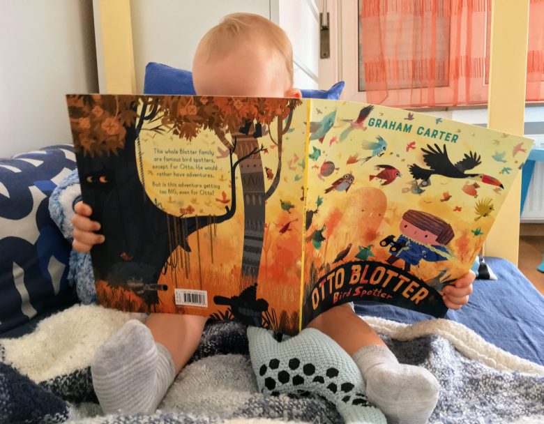 “Otto” was love at first sight and reading and it’s on our daily core reading list. “Otto Blotter bird spotter” by Graham Carter is a book I came across through the review of one of the instagram mommies and it drew my attention because it features bird spotters, a relatively uncommon theme, I find. It is a lovely story, with a fantastic element to it, and little gosling is so excited and happy throughout.