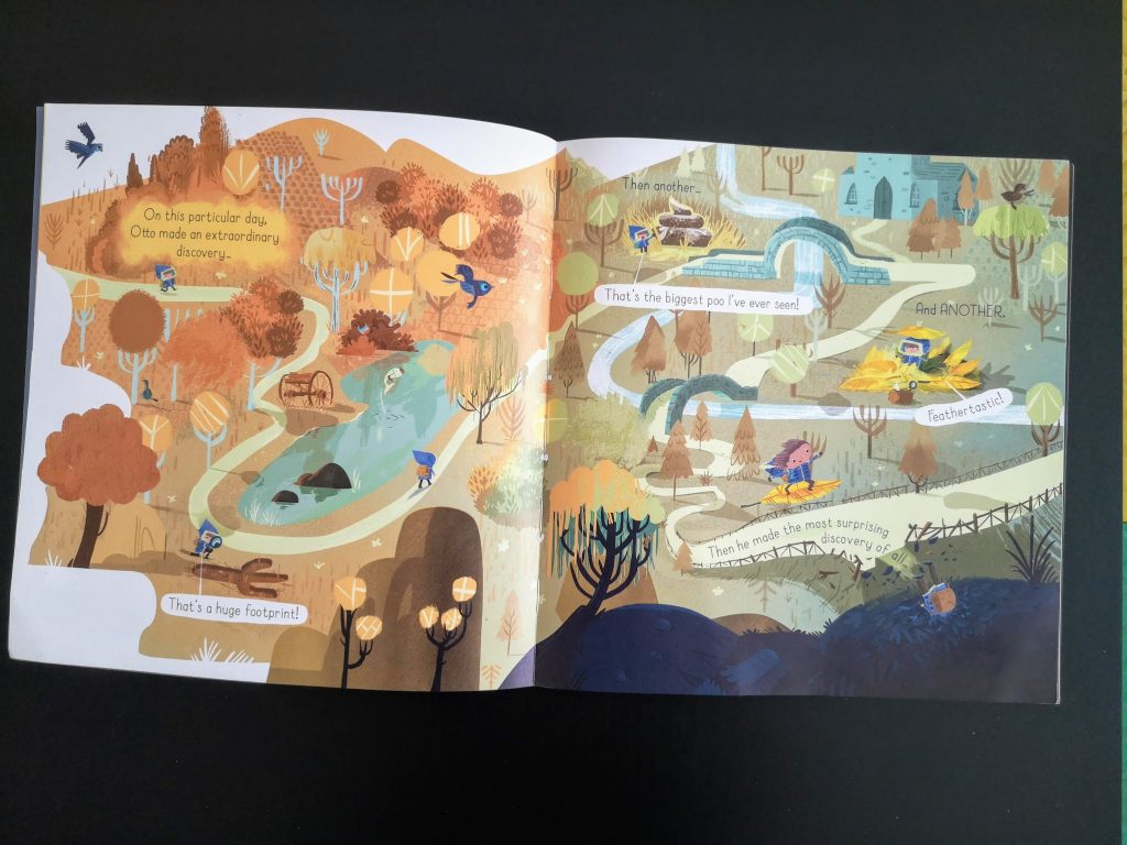 It is a different and attractive story about exploration and discovery built around the idea of a lonely kid, yearning for a friend. I love the illustrations, so many details; the choice of colours is fantastic, lots of orange and turquoise; so novel and original. They add so much to the story…However, don’t read it in a dark place, some pages may be hard to decipher without proper lighting.