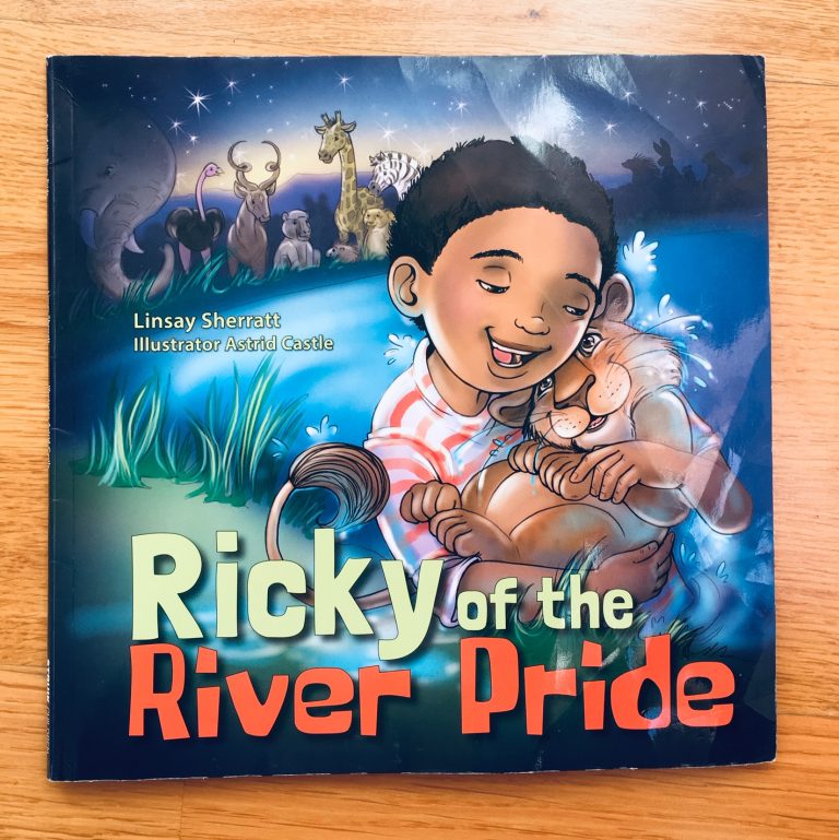 I found it in my local bookshop in South Africa, where we were living at the time. I bought it for its strong local flavour. Not in the least because Ricky’s animal toy friends are from the local fauna: lion – his sleep buddy, elephant, cheetah. It has a touch of the Lion King about it, featuring a beloved ruling lion family and an orderly and protective animal kingdom. It also helps reinforce in a natural way baby’s awareness of racial diversity, which I find important.