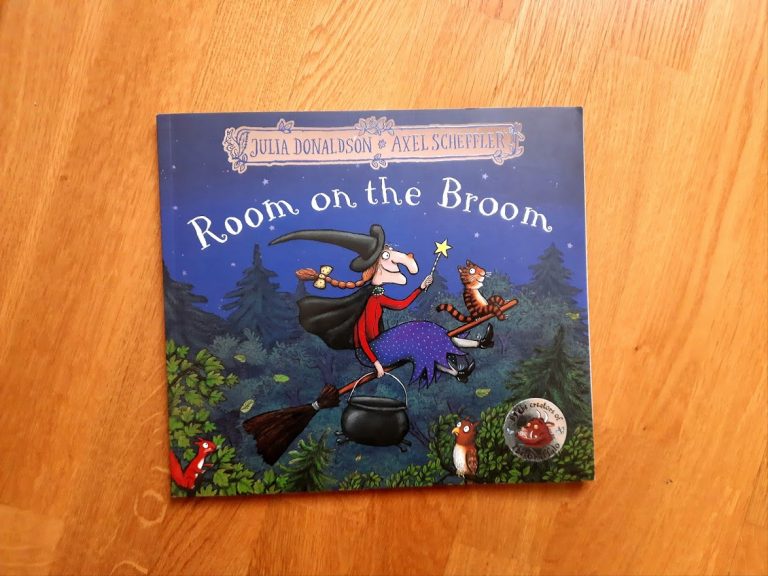 The witch in Julia Donaldson and Axel Scheffler’s “Room on the broom” is kind, friendly, unpretentious, clumsy and even a bit helpless. Very unlike other witches. But little gosling did not know any other… this was the first witch he met and loved it (still does), together with its witch apparel and tools 😛
