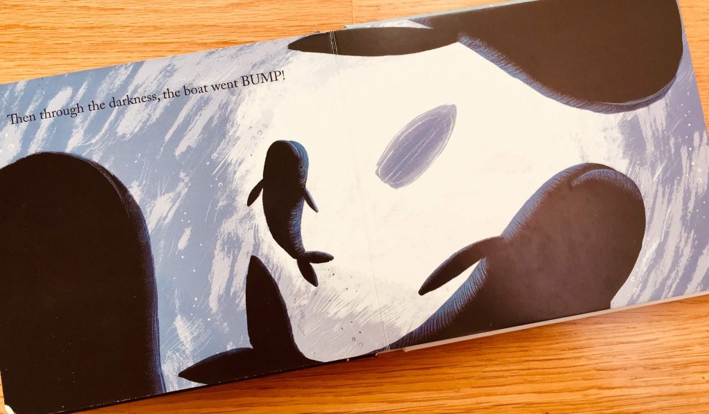 It’s the sequel to “The Storm Whale”, which we haven’t read.. yet. But it’s a heartwarming, easy to follow story nevertheless which speaks to the strong bond between a little boy, Noi, and his dad, to friendship, to gratefulness and to good happening to those who do good. When his dad is late from his last fishing outing before the winter sets in, Noi goes out to sea to find him; lost and scared, he is brought back to safety by the whale he saved months earlier.