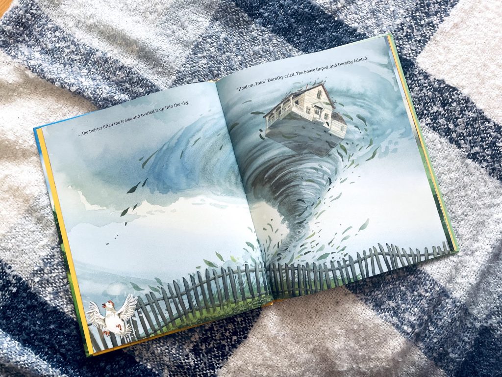 “The wonderful wizard of Oz” was one of my favourite stories growing up. I still carry with me bits and pieces of its dramatised version for radio/vinyl in Romanian and have been singing its song about the yellow brick road to little gosling to sleep. I’ve long wanted to share the story with him and I finally decided to do it when he showed a strong and persistent interest in tornadoes 😛