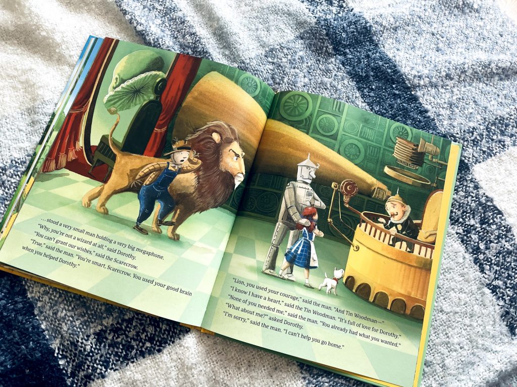 I get lots of “why” questions: why do they have to go in a cellar? Why does Dorothy live with her uncle and aunt? Where is her granny? Why is her uncle called Henry? And so on…We talk about emotions and what each of the characters experiences in different situations, particularly who gets scared of what. Dorothy and Toto look quite fearless. He also has me singing “We’re off to see the wizard, the wonderful wizard of Oz” from the movie several times :))).