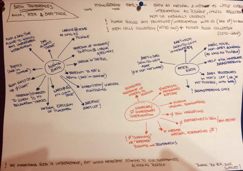 We came out of that meeting excited. We had found the right match. I had found the guarantee I was looking for that an intervention (needles or cuts) would be the last resort and I found a warm, personal connection with the health professional. So, we parted with our doctor. Our ideal scenario would have been having the doctor paired with the midwives, as back-up. But it was not something that she did. And I got to think about and design my own birth preferences, which kept me busy and positively focused about childbirth.